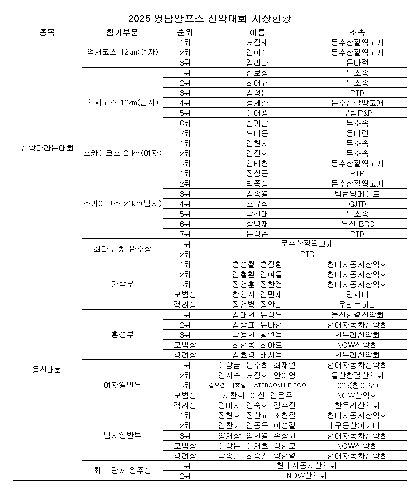 2025 영남알프스 산악대회 시상현황